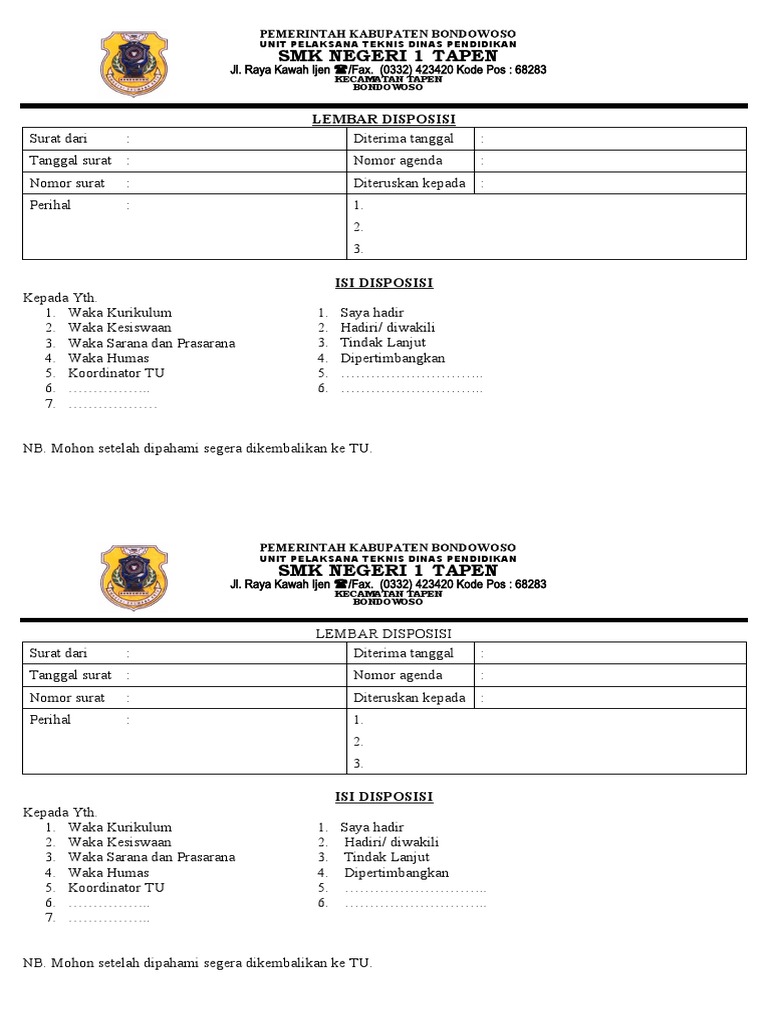 Lembar disposisi puskesmas kota kabupaten tolitoli sulawesi tengahfull description. Prosedur/ tata cara pengisian lembar disposisi. Pastikan telah terinstal pdf 2. Nah, agar tidak bingung dan pusing tujuh keliling untuk urusan yang remeh satu ini, kali ini kita akan memberikan contoh daftar riwayat hidup atau contoh cv yang baik dan benar, disertai dengan cara membuat dan format daftar riwayat hidup yang. Lembar disposisi, lembaran isi untuk mencatat instruksi dan pimpinan berkaitan dengan proses tindak lanjut dari surat yang diterima dari pihak lain.